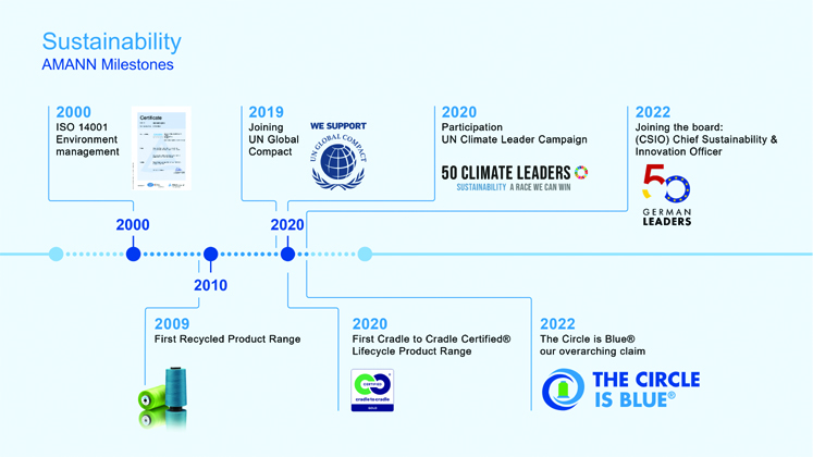 The circle is blue – this claim embraces AMANN’s holistic corporate direction towards circular economy and its overall sustainability vision – since only the transformation from the linear business model to circular economy can solve the ecological and social challenges of our time.