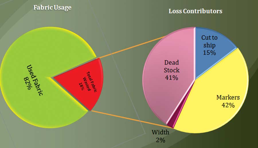 Markers : 7.5% of fabric was lost due to inefficient cut order planning and poor markers.