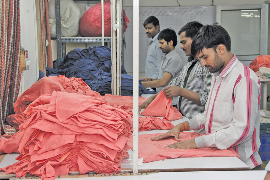 The company has a vertically integrated setup with 12 circular knitting machines that can produce a total of 2,000 tonnes of knitted fabric per day as against the Group’s total requirement of 4,000 tonnes per day; the balance is outsourced. “The main concern when it comes to running our own knitting setup is the availability of yarns in and around Delhi-NCR which sends our timelines haywire,” explains George. The company also has three 18-head Tajima embroidery machines. The printing is outsourced from a captive unit whose capacities have been reserved entirely for SBIL. “Our QC team is deployed at all the contractor firms to control the quality,” informs George. The company also has a centralized sampling team where each tailor is reserved for a particular set of buyers. “This proves helpful because when the operator is working for the same buyer day-in and day-out, she/he becomes well-versed with the quality and fit requirements of that particular buyer,” avers George.