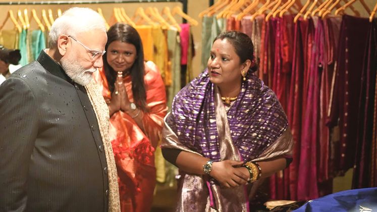 But beyond technique lies the label’s true power – one that is grounded in community impact. With 48 looms across clusters and over 250 women engaged, Aabharnam builds dignified livelihood while preserving generational know-how.