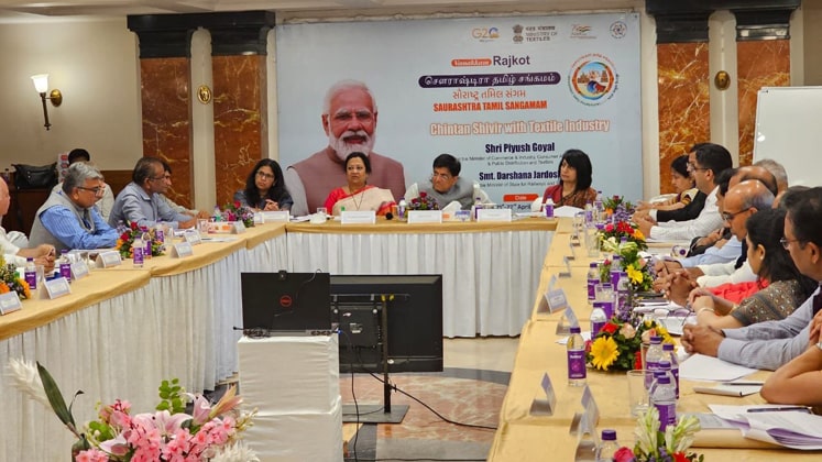 The Minister was presiding over the sixth interactive meeting with the Textile Advisory Group (TAG), to review the progress of initiatives for the cotton value chain, as part of the Saurashtra Tamil Sangamam which is being conducted under the ‘Ek Bharat Shreshtha Bharat’ Initiative in Gujarat in Rajkot.