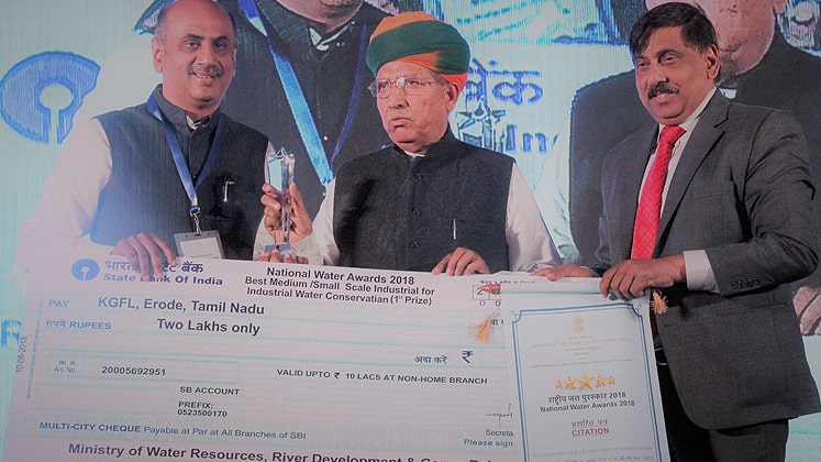 KG Fabriks Ltd. (a unit of Sri Kannapiran Mills Limited) has been awarded the first prize in National Water Awards 2018. It received the honour in Industrial Water Conservation by Ministry of Water Resources, River Development & Ganga Rejuvenation, India.