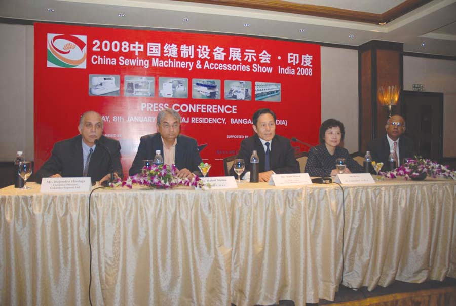 The Clothing Manufacturers Association of India (CMAI) and the China Sewing Machinery Association (CSMA) jointly organized the first largest solo show outside China in Bangalore from 10-12 January. The main purpose of the event was to introduce Chinese sewing machinery industry and sewing machine products to the Indian manufacturers. The focus was thus on showcasing the advances in technology. The Chinese companies displayed their latest and extensive range of sewing machines such as single needle/double needle interlock machines, overlock machines, specialized machines, button attaching machines and embroidery machines. There were also a few companies showing machines in the area of pressing, quilting and finishing. Also on display were companies showcasing spare parts, motors and garment manufacturing technologies.