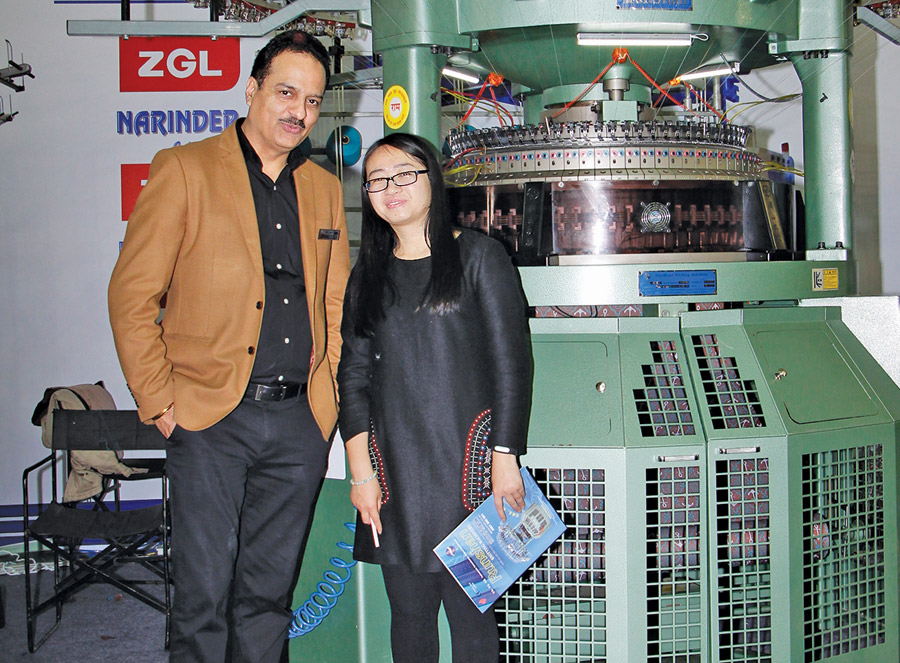 Many technology suppliers had machines or new models which attracted the visitors like Steiger, Switzerland, which displayed its latest flat-knitting machine, Antares 3.130, with motorized Popup Feeders. It was introduced in India for the first time. The technology is beneficial in pleating fabric. Representing the company in India, Gurpreet Singh MD, K.P. Exim was happy with the response that the machine received. Narinder International also displayed for the first time its flat knitting machine (from Changshu Guoguang Machinery Co.) that can offer products of various gauges (7 to 16) by just changing its needle bed, enabling manufacturers to save a lot of money. Narinder Kumar, Proprietor of the company informed, “To support the industry we are doing our best to introduce new machines. This is a patent technology of a Chinese company and we are expecting at least 100 installations of this machine this year.” In circular knitting it was offering fully electronic jacquard machines. In another development the company displayed low-cost blanket manufacturing on circular knitting machines. Narinder International is getting good business from Panipat.