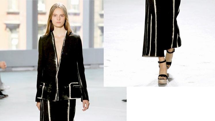 Directing the trend into the chancy category of formal wear was Proenza Schouler, who took an interesting leap by covering slouchy pantsuits in raw paint strokes. The trend, generally seen on casual T-shirts, has been overlooked for its notoriety and rendered on a host of other silhouettes in easy monochromes.
