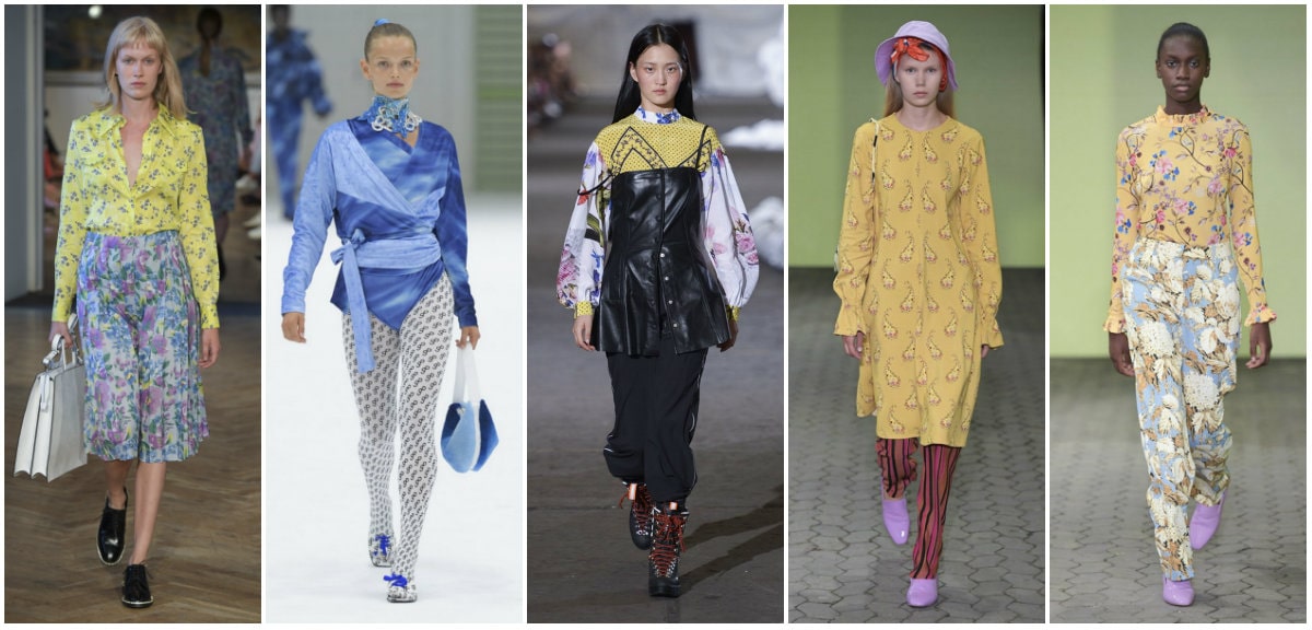 Dissimilitude patterns like florals were set against geometrical prints alongside ensembles that showed complementing lines with plaids and stripes. Different-coloured floral motifs were the most recurrent of this trend.