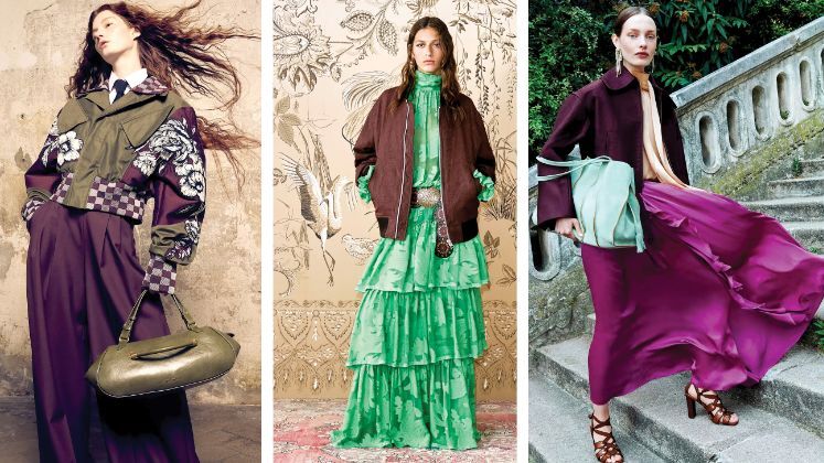 Antonio Marras used burgundy to transform utilitarian elements with a nylon flight jacket and pleated trousers elevated as separates with an artistic edge. Etro took on a more maximalist route, juxtaposing a brocade burgundy jacket with jewel-toned emerald, while Ulla Johnson softened the narrative with a burgundy suede jacket over peach silk and magenta. The result across all collections is clear: burgundy carries a dynamic tension that is opulent yet grounded, bold yet wearable.