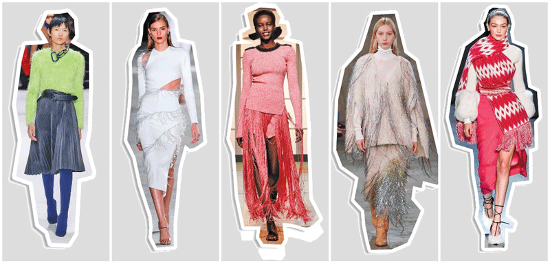 Boomerang-worthy pieces are a big hit this season with an umpteen number of designers going all out with fringe-y details on the runways. Garments featuring long, hair-like threads crafted out of beads, high-shine gossamers and hairy wool, made a recurring appearance, over long coats and jackets, dresses and trousers.