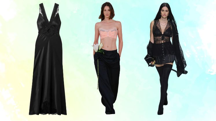 The trend further extends itself into boudoir-inspired dressing, where lingerie details step into daylight. From Versace and Tom Ford to The Attico, designers elevated bralettes and corsetry as key layering or standalone statements, blending vulnerability with empowerment. For brands and retailers, this direction signals renewed consumer interest in gothic sensuality- think dark lace, sculpted silhouettes, metallic finishe, and romantic textures reimagined for the modern wardrobe.