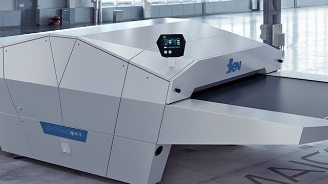 The machine has a feeding belt of 1,400 mm (55.12 inches), which is suitable and specially designed to fuse large parts of the garments. It has a separate feeding and transport belt which gives time to the garment to cool down after fusing making it easier for handling. Moreover, the newly designed belt tracking hardware ensures shorter move of cylinder, thus ensuring less stress for the belt edges and lower distortions inside the belts.