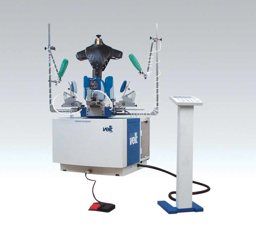 Thus easily interchangeable heads and bucks with modular format ensure the flexibility of product and fabric types. Even specially designed ladies bucks with an inflatable bust are now available. As the bust is inflated the chest point moves tangentially giving smooth, ‘perfect shaping’. Subsequent steaming from inside helps to set the shape. Forms are shaped in such a way that there are no gaps between the shoulder and the torso, yielding a stable support to the loaded garment, and thus avoiding unwanted distortion as they are easily adjustable.